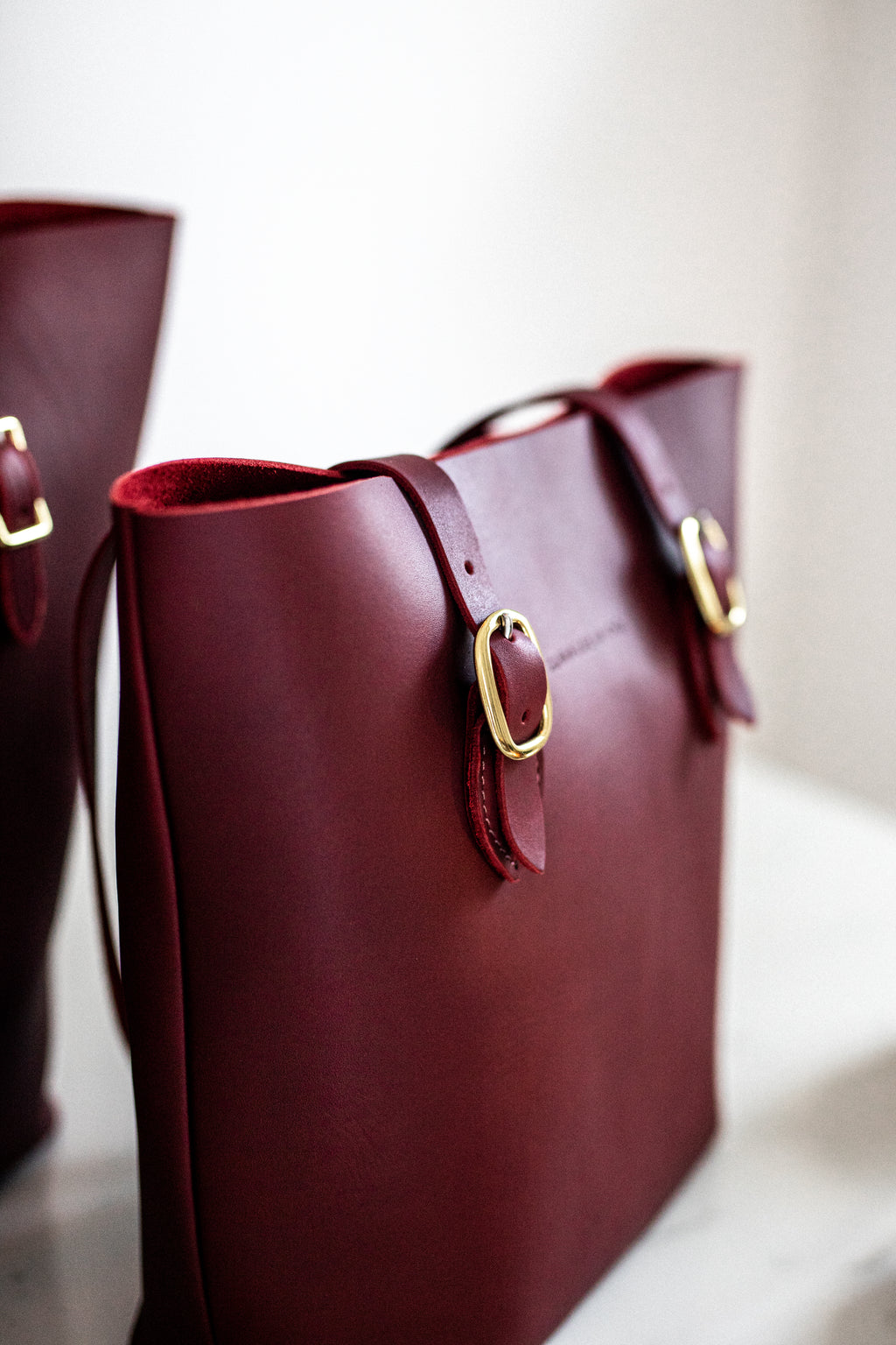 Each tote is handcrafted with care by our team, made in small batches. Featuring solid brass or stainless steel buckles stitched onto adjustable straps for strength and durability. Our original design is the perfect showcase for the supple, full grain leather.